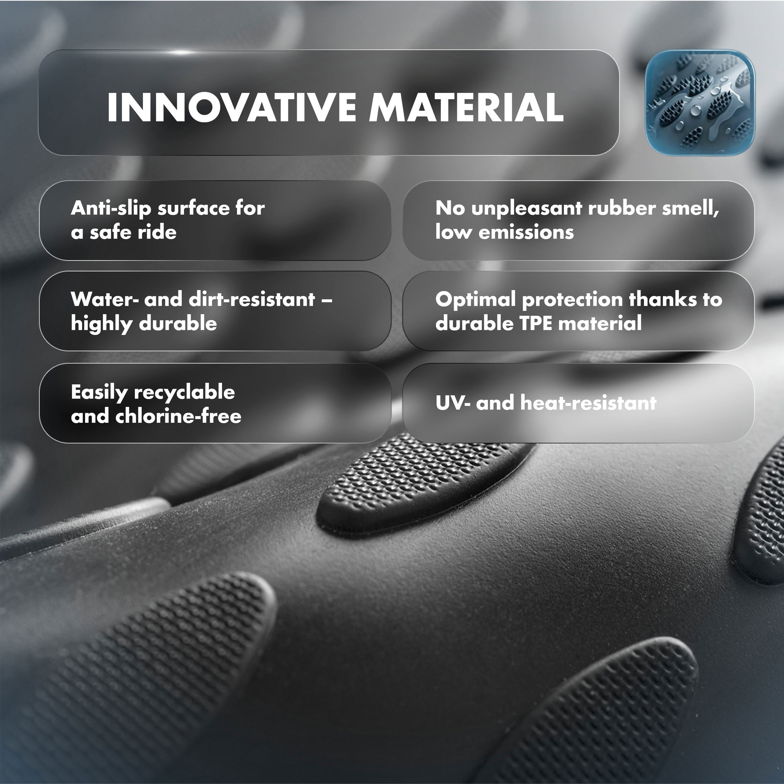Due to the high flexibility of the boot liner, it is very easy to place it correctly in the well of the boot as well as remove it again. Just fold it up and the liner can be taken out for cleaning. In addition, the liner has raised edges to catch any liquids and dirt. So, from now on, dirty hiking boots in the car will never be a problem again.