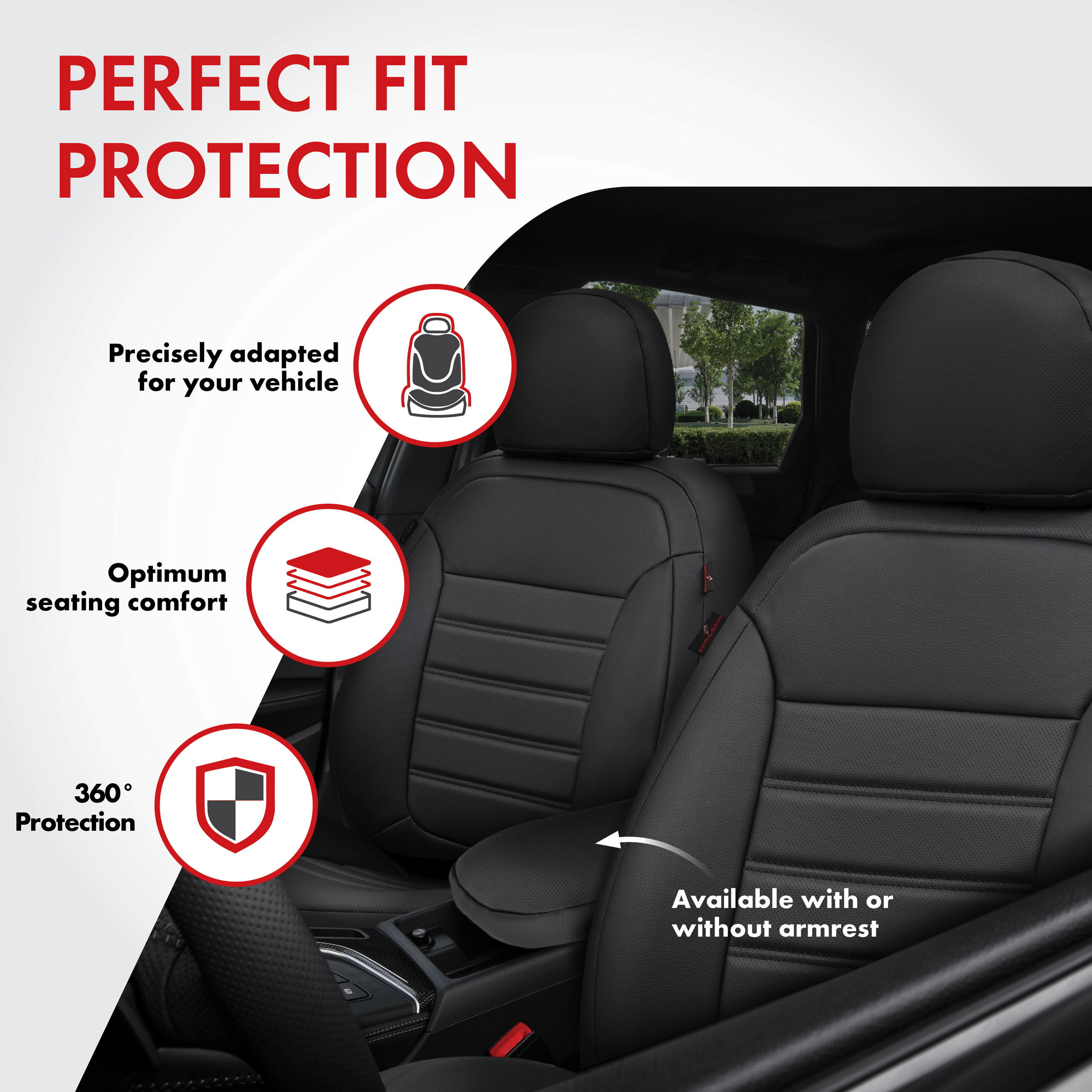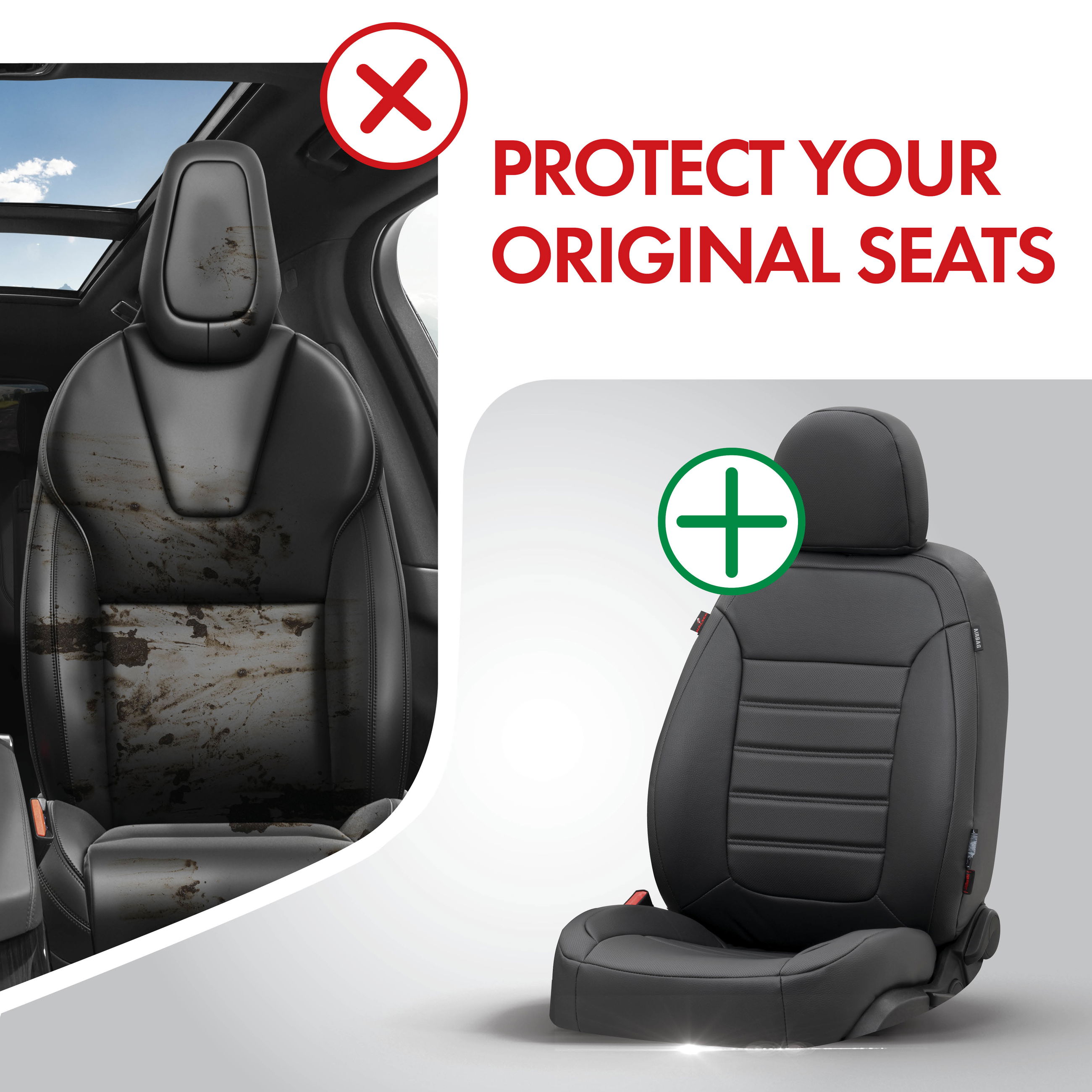 Give your car exclusive protection and luxurious comfort with the Walser Fit Plus seat covers! These covers are custom-made for your car model, with many openings already pre-cut for a perfect fit. The classic "Robusto" design blends seamlessly into the overall appearance of your vehicle and lends it timeless elegance. The 3 mm thick foam padding protects your car seats and ensures outstanding seating comfort, even on longer journeys.